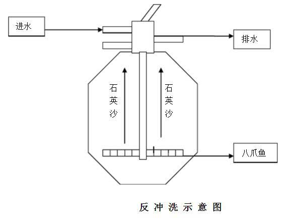 泳池水處理設備--泳池過濾沙缸經過一段時間的使用,積存的污物阻礙水流使其減弱。這時就要對過濾器進行清潔。將控制開關打到"BACKWASH"位置,這時水流就變成了反方向流動,水流八爪魚進入沙缸底部,再經過沙層反沖上來,將以前捕集的污物,殘渣沖起從排水口排出。