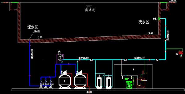 3.機(jī)房占地較小,標(biāo)高要求比泳池水面低1m。
