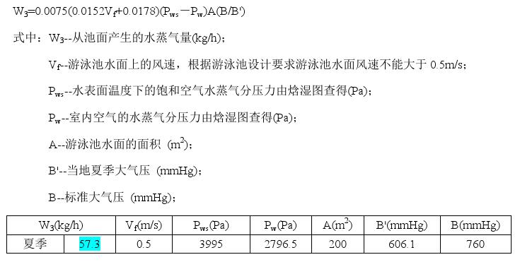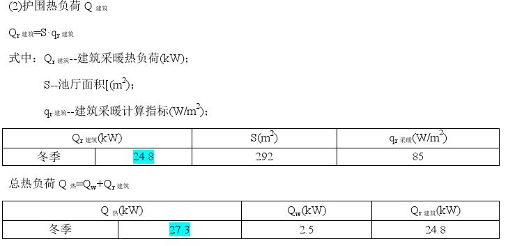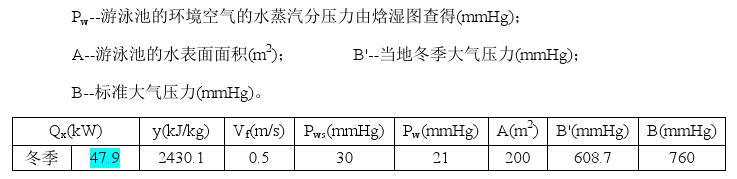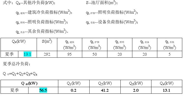 (2)游泳池的水表面、池底、池壁、管道和設備等傳導所損失的熱負荷計算