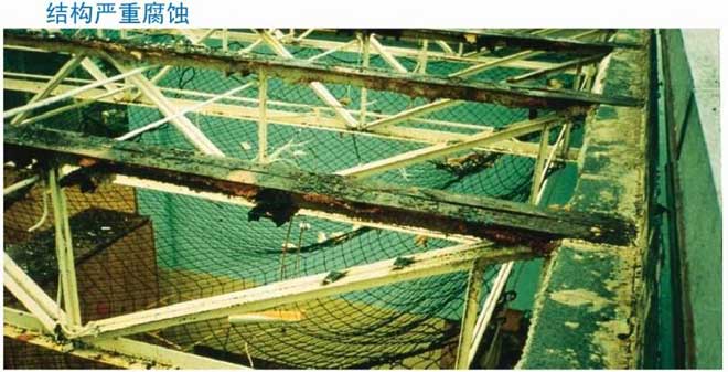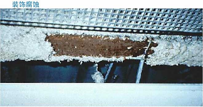 室內游泳池由于池水表面蒸發容易使室內充滿潮濕含氯的空氣,當潮濕含氯的空氣遇到較冷物體就會凝結出冷凝水,由于冷凝水含有大量的氯,將會腐蝕所接觸到的建筑物,如使裝修面層生銹、起鼓、掉漆等,嚴重的時候回因腐蝕到受力鋼筋,使之抗拉強度降低而斷裂,造成房屋垮塌等危險。這情況在發達國家增發生過多次。