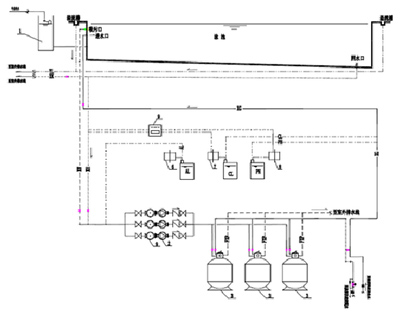 (2)補水補熱負(fù)荷:以每日補水量為5%的池容積計,冬季15℃工況冷水溫度為10℃時,每小時補水補熱負(fù)荷:Ph2=V×5%×(t2-t1)×1000/860/24=600×5%×(28-10)×1000/860/24=26kW該泳池初次加熱每小時所需熱負(fù)荷Q總=P2h+Ph1=300kw+80kW=380kW該泳池每小時恒溫所需熱負(fù)荷Q恒=Ph2+Ph1=26kW+80kW=106kW